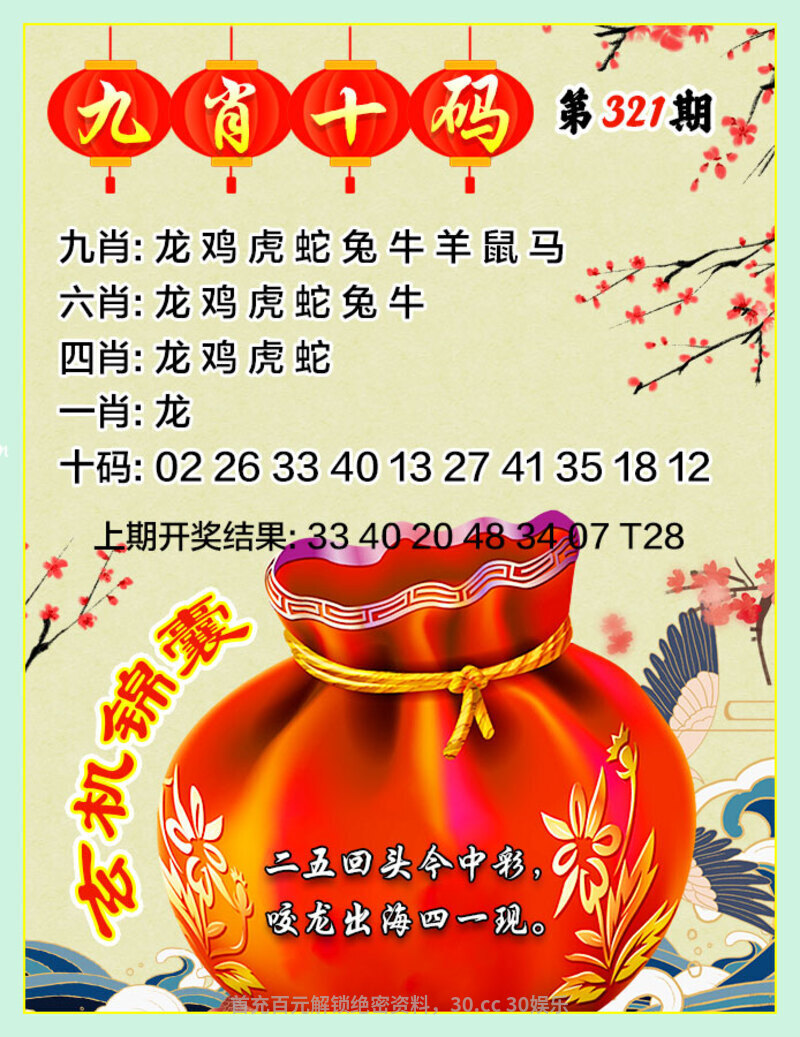 321期:6肖中特【猪龙牛狗兔】羊23准